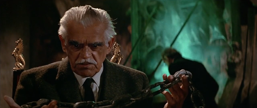 The family butler collapses at dinner and dies overnight. Purplexed by Nahum’s standoffish attitude and refusal to allow Stephen to help with the butler’s burial, Stephen sneaks into the butler’s room at night, discovering nothing but a bloodstained sheet with a strange, ashen impression of a human form, almost as if the butler had rotted into the cloth. Would it have anything to do with the strange metal container in the basement? The one that is giving off a weird green glow?