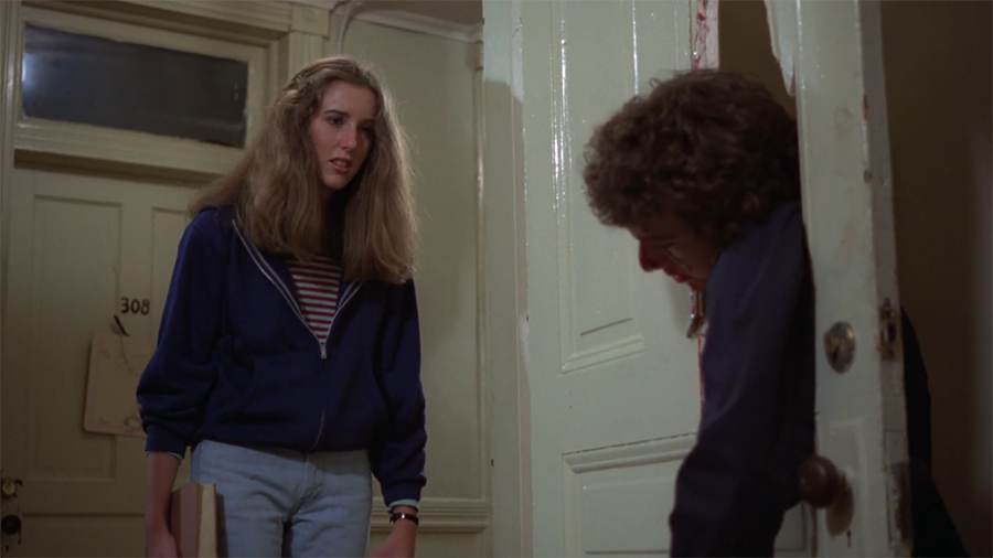 Courtney resents Janet a little bit because she’s good-looking and will therefore get a free ride through life. I think Courtney’s problem isn’t that she’s unattractive, but that she’s a total fucking bore. Our Final Girl will spend 70% of this movie sitting in her dorm room doing absolutely nothing. Oh, and did I mention the killer has arrived on campus and is skulking around? Don’t worry about him, though. He won’t actually raise a knife until the 55-minute mark of this 90-minute movie. Awesome.