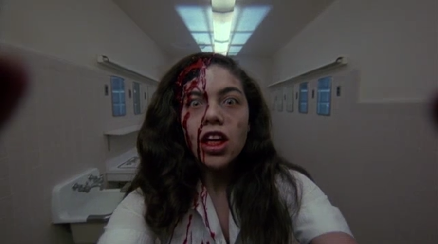 I felt bad for Lawson. She’s absolutely giving it her all in a film that isn’t reciprocating. Once the halfway mark hits, the movie leaves the realm of vague slasher psychodrama and dives headfirst into schlock horror, with the reanimated Dr. Ramzi cracking worse jokes than Freddy Krueger as he tosses around severed heads and sticks pins into exposed brains. The film shifts into a full-blown zombie movie at the one-hour mark with a horde of undead mental patients rising from the dead pit to lay waste to the hospital, tearing out the skulls of every poor sucker they can find.