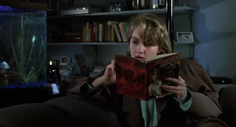 But I, MADMAN is not WES CRAVEN’S NEW NIGHTMARE. It isn’t interested in examining how the fictions of horror can inform the realities of horror. It isn’t a meta-exploration or self-reflective critique. For the first half of the film, we are well within the boundaries of believability to think that all of this is the result of news of a real-world serial killer being processed through the brain of a horror-obsessed reader. Virginia could simply be imagining much of what we see in the movie, or the “Dr. Kessler” Virginia encounters is just a rabid fan of a horror character, adopting that fictional killer’s M.O. as their own. It might even be Lenny, the guy who is clearly (possibly obsessively) in love with our heroine. After all, he IS an actor. Maybe he’s adopting the persona of a character Virginia is far more interested in than him.